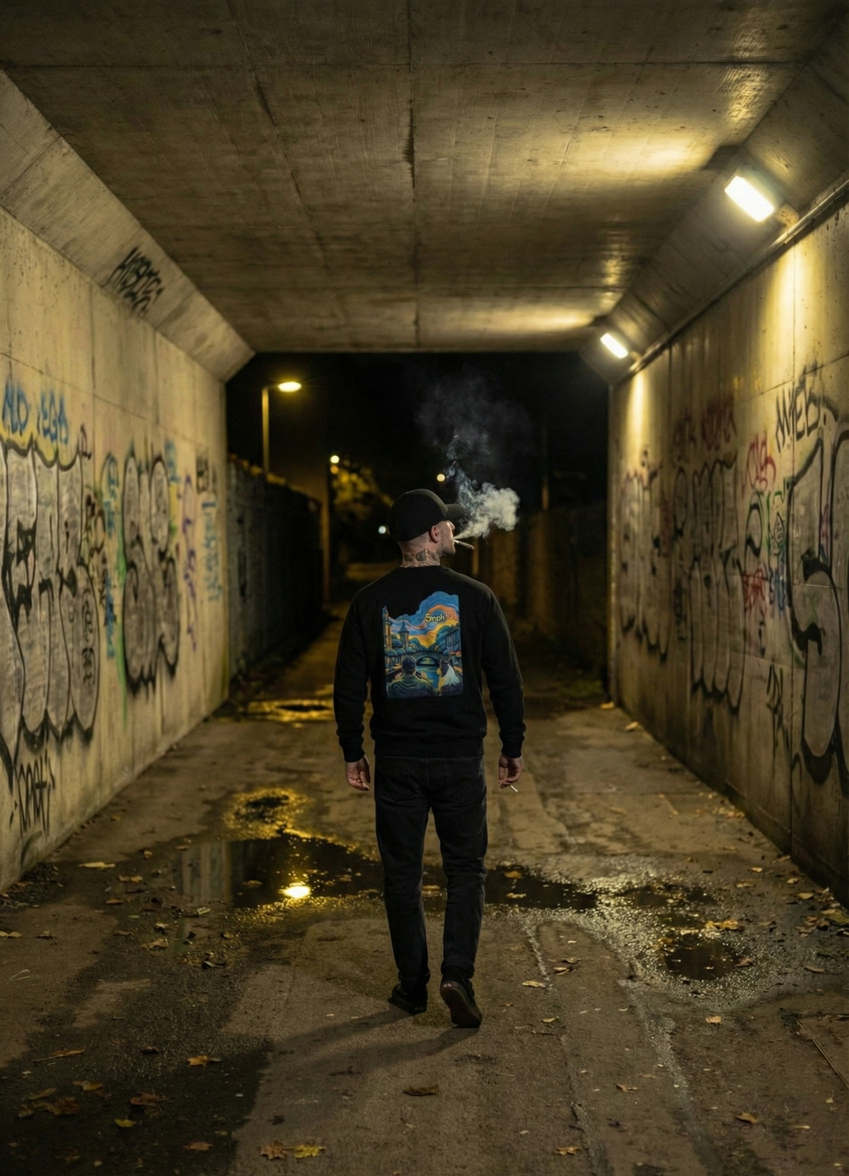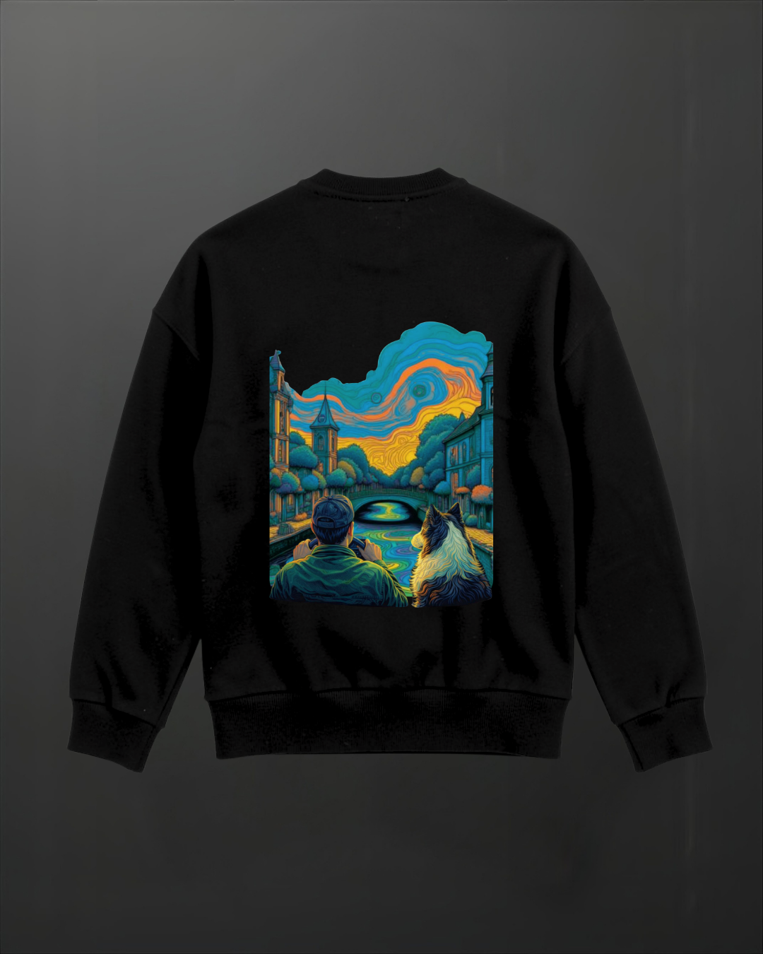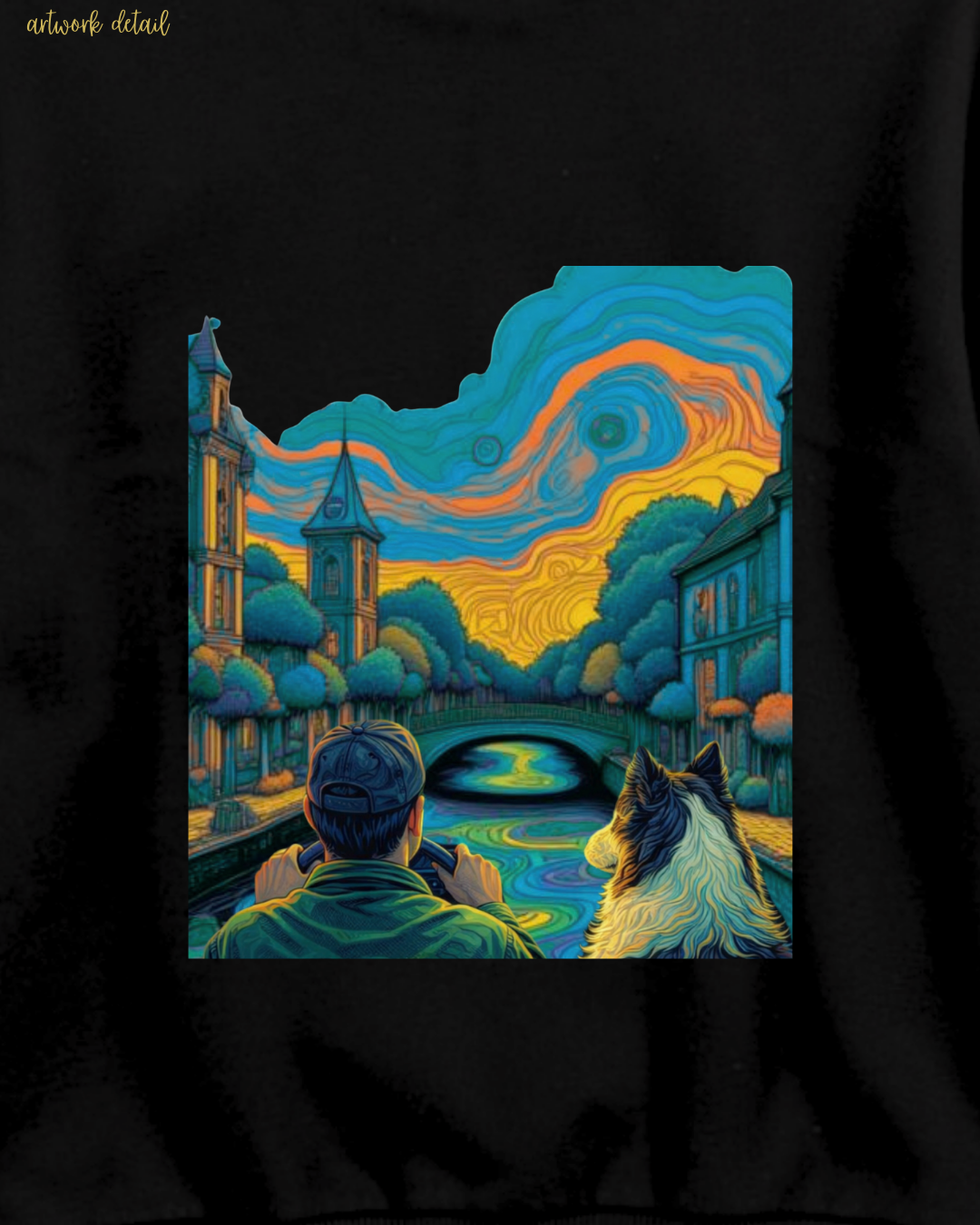 The 5MPH emblem on the front keeps it clean and understated. Turn around and the story’s on the back: a moment of stillness, a person and their dog, watching the world slow down. It’s not loud — it’s intentional.